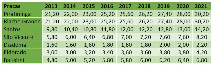 Sobre o valor do pedágio pago pelo usuário nas rodovias administradas pela Ecovias Imigrantes, incidem os seguintes percentuais a título de tributos: